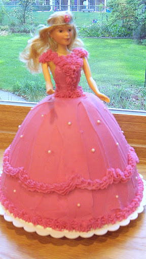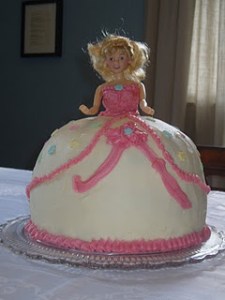 | My first attempt at a doll cake for my daughter’s 4th birthday. The proportions are a little off, but the girls didn’t care! |