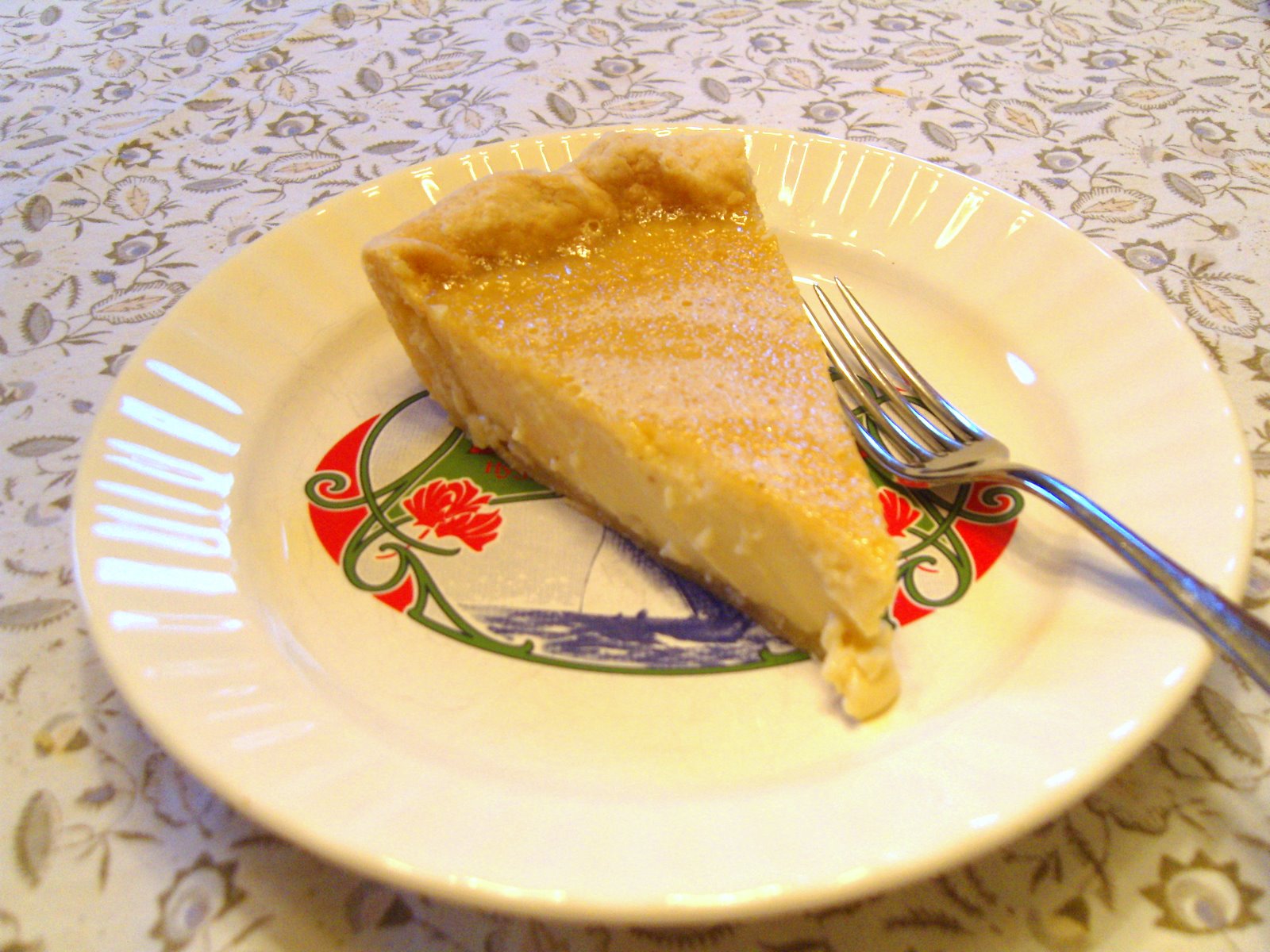 Now, what to put in this pie?  I found two variations on a maple syrup pie, one with eggs and one without.  I chose the Smitten Kitchen recipe, because it seemed less sweet and had more maple syrup.  It did require blind baking the crust, but I left that for the Chef to do while I dashed out for some cream. I didn’t have any freshly ground nutmeg–I haven’t replaced the nutmeg that fell victim to a curious two-year-old in the spice cabinet–so I used 1/4 teaspoon of ground mace.  And I didn’t bother straining the custard, so there were a couple small bits of crystallized syrup in the filling.  Maybe I’d strain it if I were making it for company–or maybe not.