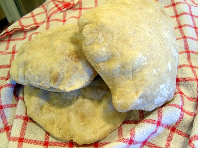 Turn on the exhaust fan (some of the flour on the baking stone will burn and set off your smoke alarm–be prepared!) and slide two pitas onto the stone. Bake for 5 to 7 minutes, until puffed and starting to brown. Wrap the warm pita in a clean dish towel and let it cool on a rack. They will deflate slightly while cooling, but the pocket inside will remain. Bake the rest of the pitas, two at a time. An entire batch of dough should make 16 pitas; bake some now and some in the next 2 weeks, or bake them all now and store them in an airtight bag in the freezer. Warm frozen pita in the oven, wrapped in foil.