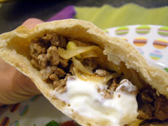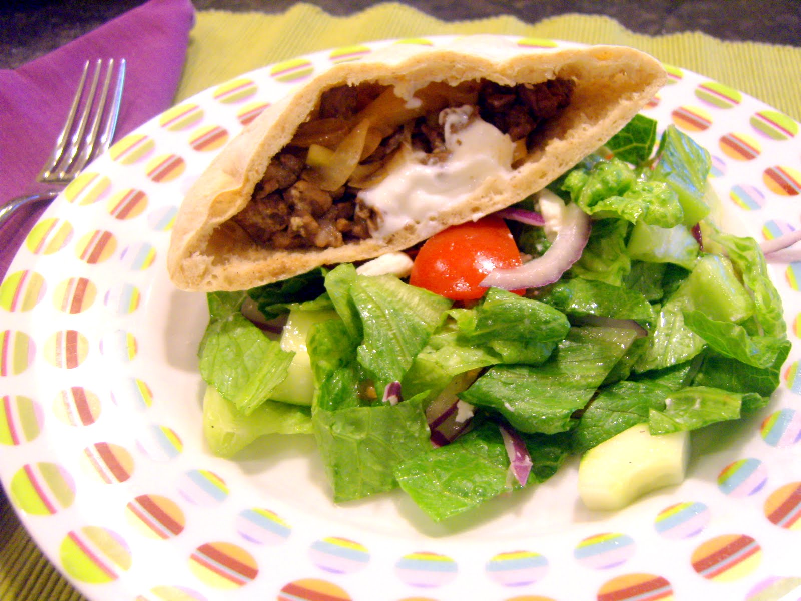 If you are serving this right away, go ahead and stir in a good spoonful or two of yogurt into the lamb mixture. But if everyone isn’t gathered at the table all at once, leave the yogurt out and let each person add a dollop to their own sandwich. Cut warm pita in half, fill each half with the lamb and yogurt, and serve with a big salad. There shouldn’t be any more leftovers!