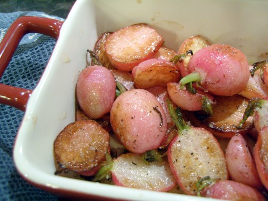 Pan roasted radishes