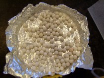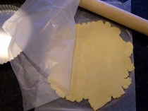 Roll out the dough between two pieces of wax paper into a 9″ or 10″ circle (depending on the size of your pan) and press into a tart pan with a removable bottom (I used 8″ but I’m sure it would have fit in the 9″). Lay a piece of foil in the crust and fill with pie weights, rice or beans. Bake for 12-15 minutes at 375 degrees. Remove from the oven and cool completely.