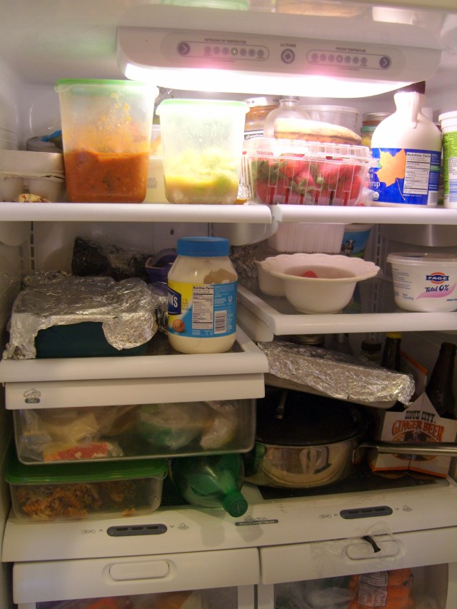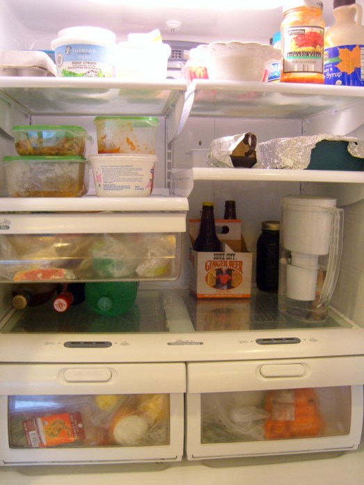 Hey, look how much space there is in the fridge now! I found several things, shall we say…past their prime? A couple completely empty containers, too! While I was at it, I wiped off the empty shelves and took out the garbage.