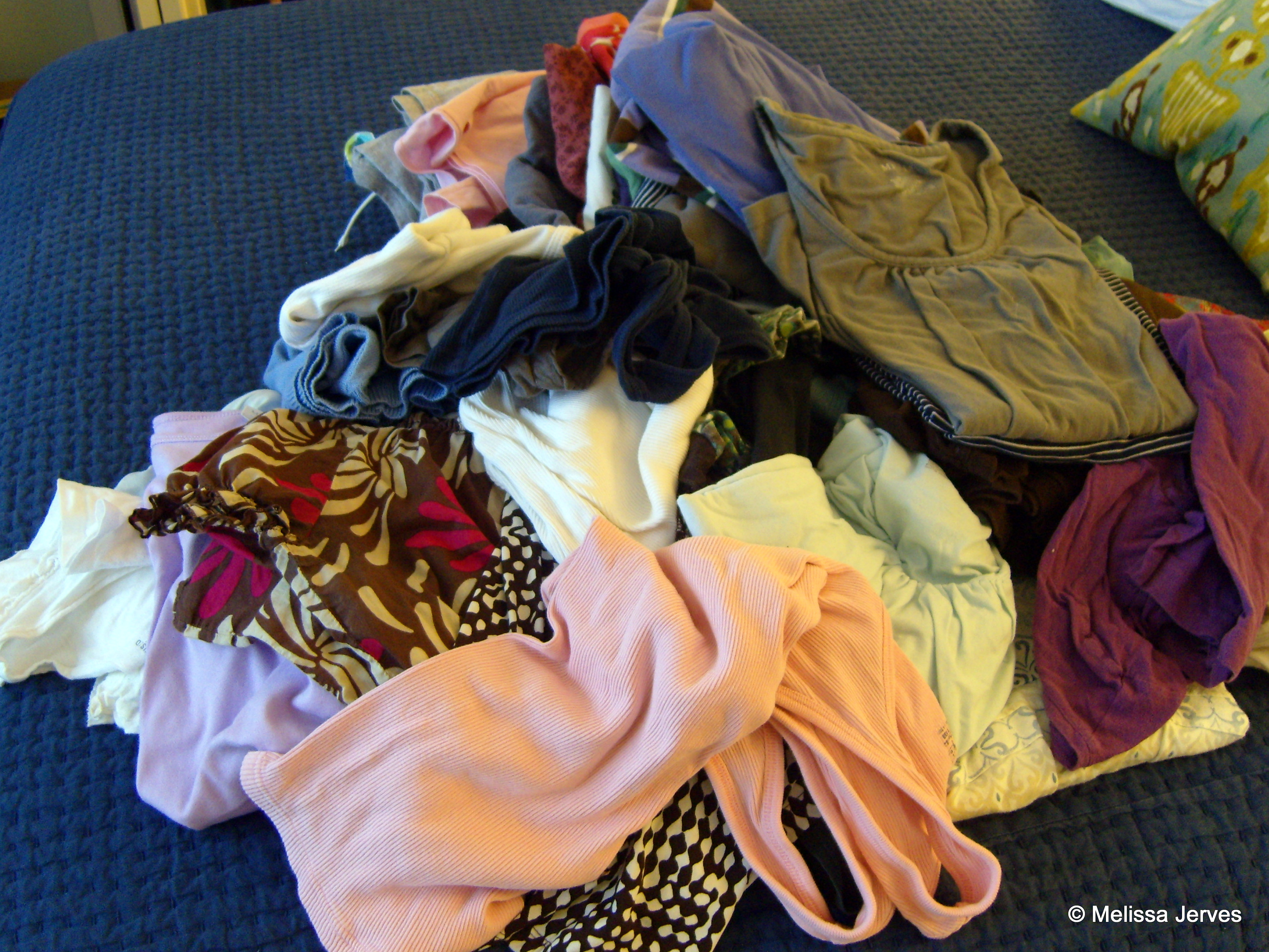 But when faced with my own overflowing dresser drawers, winter and summer wear jumbled together, I could only look on the pile of clothes with dismay. If I pulled out everything that was too small, too stained, or that I didn’t like, what would be left? But I sorted them anyway.