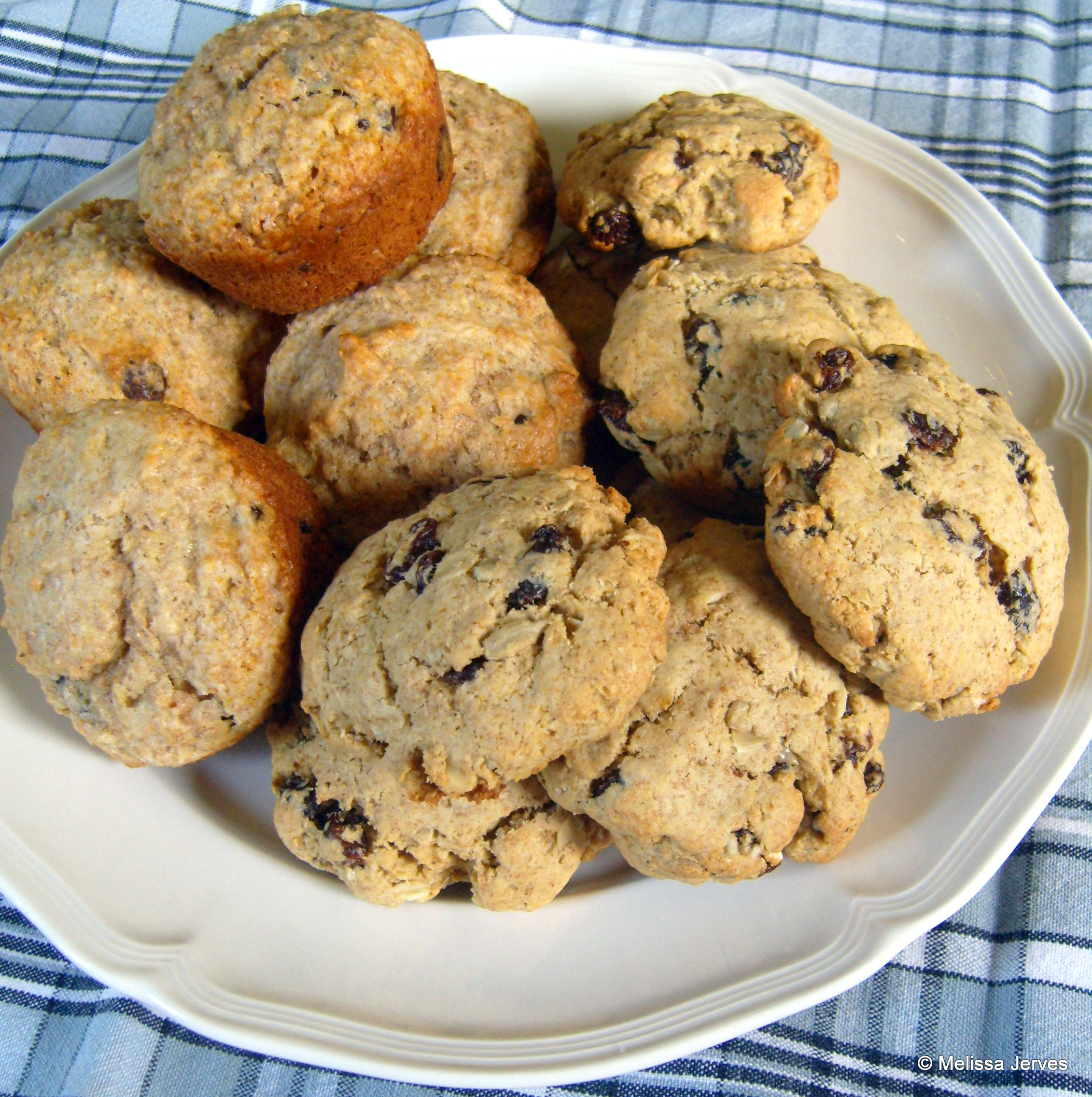 These cookies are 100% whole grain, mildly sweet, nut-free, and full of fiber. I think they are little more like tea cakes or hearty scones than cookies, but they’re yummy. If you can’t find quinoa flour (or don’t want to pay the outrageous price for it here in the U.S.), just use a cup of cooked quinoa and omit the milk (as in the original recipe).