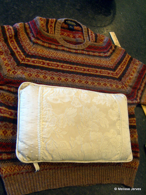 - Examine your sweater and identify where all the moth holes are. Find the biggest area without holes and lay your pillow form on it to make sure it fits.