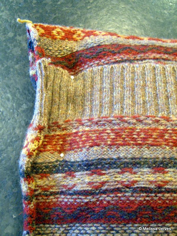 2. I decided to make an envelope style opening, with the ribbing as a decorative detail in the front. See how I tried it on the pillow to make sure it fit.