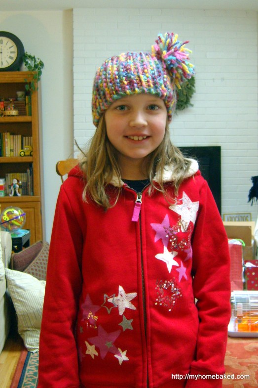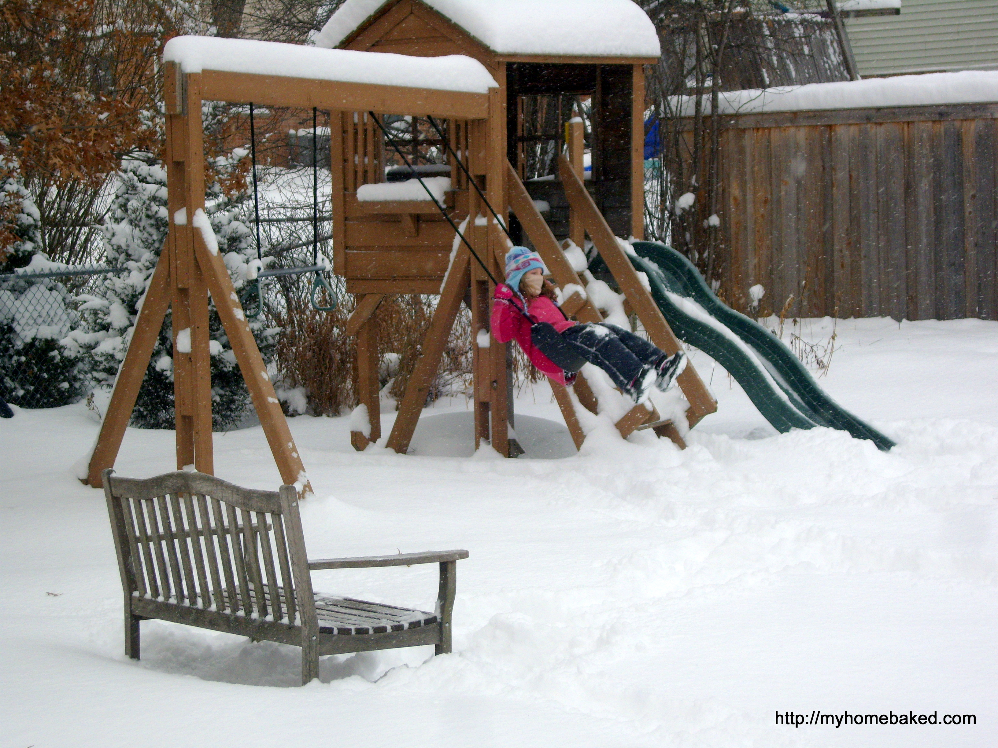 The past two weeks, the boys were in enrichment classes every morning. The ride home after dropping them off was peaceful. Miss Nine is not a child who needs to chatter constantly (unlike her brothers). We’d go home, do our chores, maybe run an errand. A couple weeks ago, she baked this cake for our anniversary, adding chopped up Snickers bars between the layers (half the recipe, baked in two 9-inch cake pans, made enough dessert for three nights. Next time, though, I wouldn’t halve the ganache.)