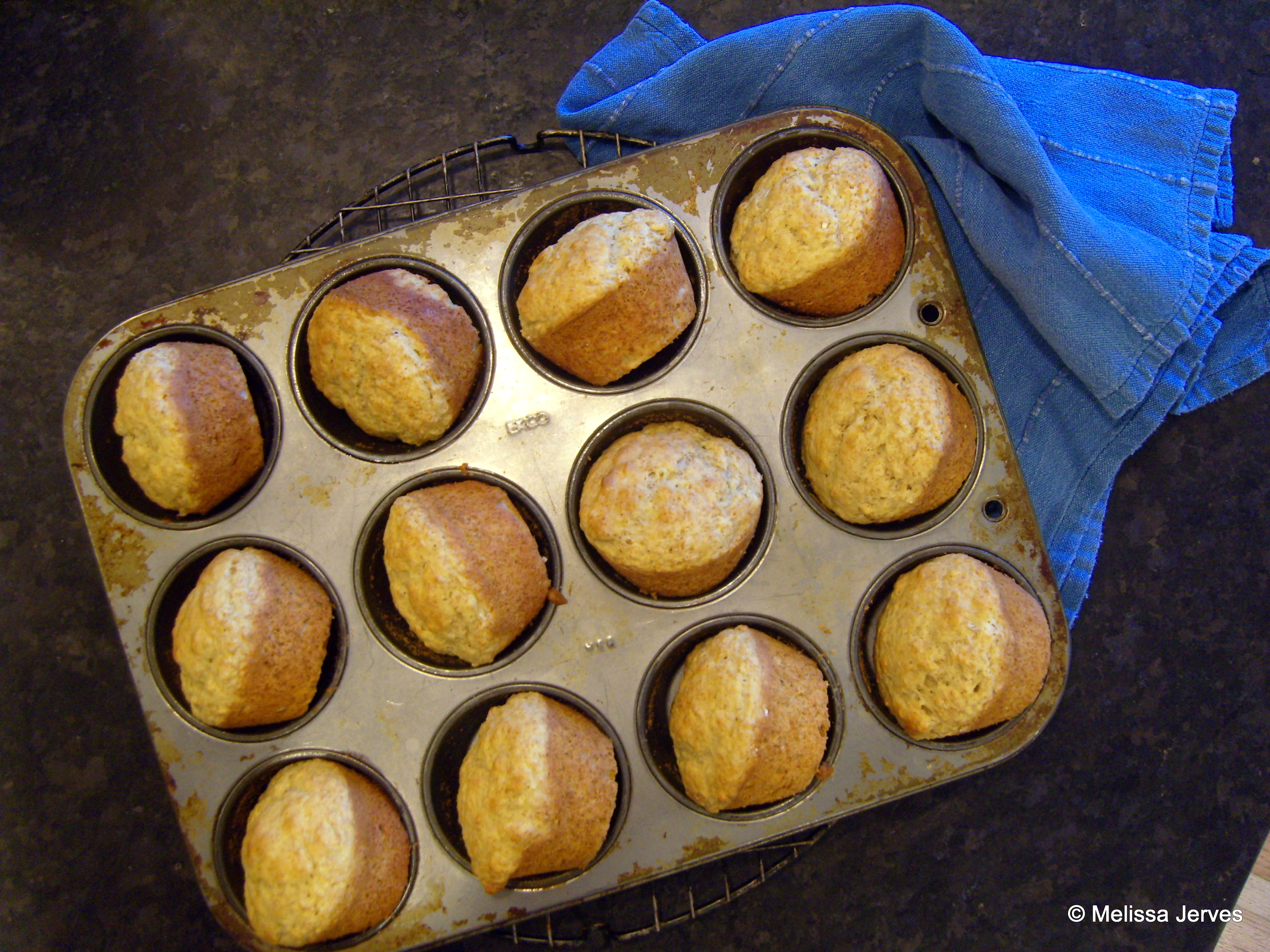 Put both pans on the middle rack of the oven. Bake the muffins for 15-20 minutes, until a toothpick inserted in the center comes out clean and the edges look browned. Remove and cool completely in the pan on rack. Move the loaf pan to the center of the oven and bake for another 35-55 minutes. Cool completely in the pan.