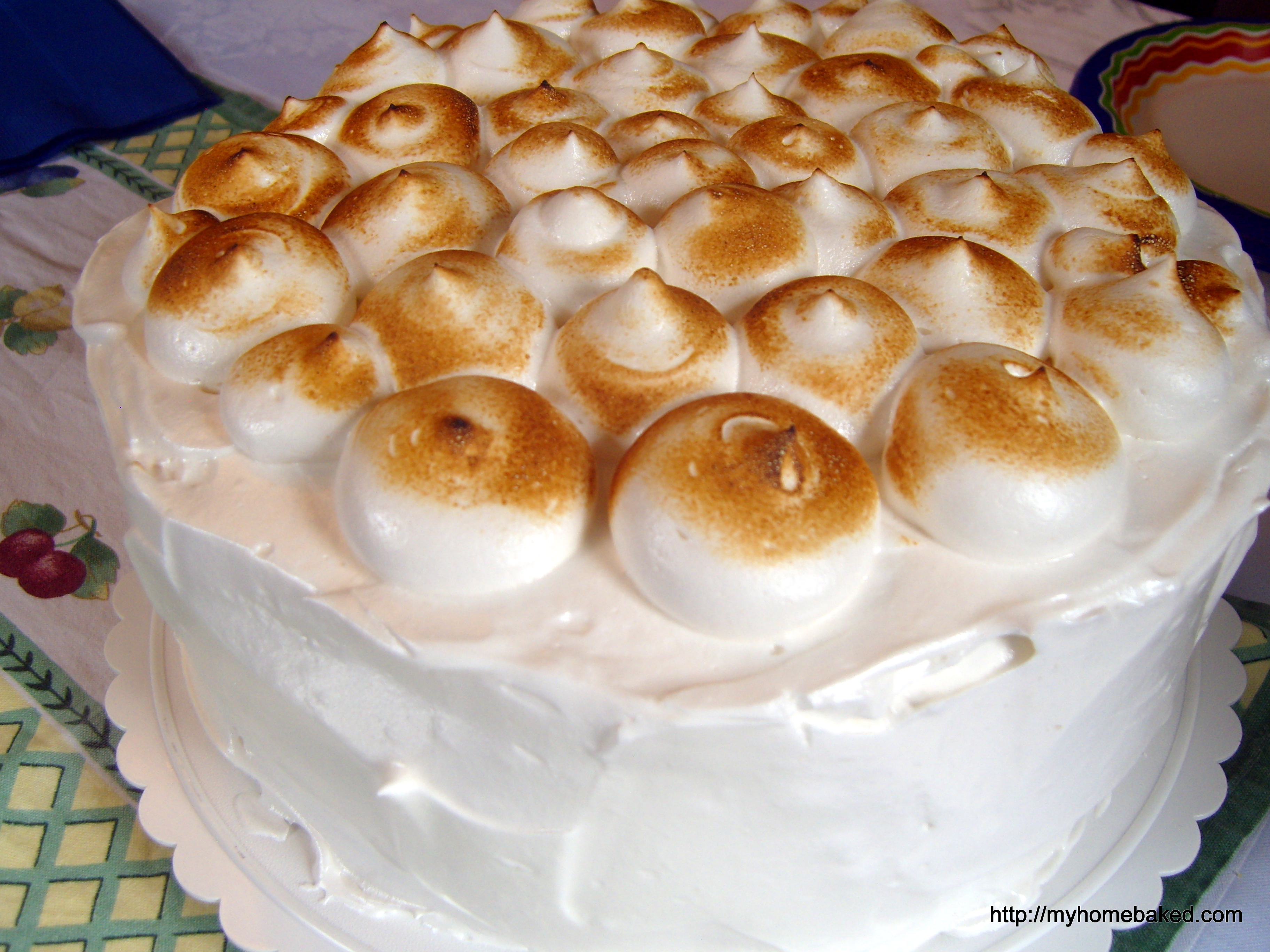 Miss Seven’s First Communion party was a great success: a happy girl, beautiful weather, lots of family and friends, and plenty of food left over. We didn’t cook again all weekend. And the cake–oh, the cake! I made the S’more Layer Cake from The Smitten Kitchen Cookbook. Miss Seven picked it out, and it seemed to go well with the BBQ theme (ribs, slaw, mac-n-cheese, green beans, cornbread). The recipe is really perfect, though I scaled it up by 50% to make it a 10-inch cake. I also used a slightly different frosting method (Rose Levy Beranbaum’s Light Italian Meringue, from The Cake Bible), because I know how to make it in the stand mixer and I was confident that it would hold up nicely if I made it the night before. As you can see, it held up beautifully. The cake didn’t last the weekend, so no worries about deflated meringue after that!